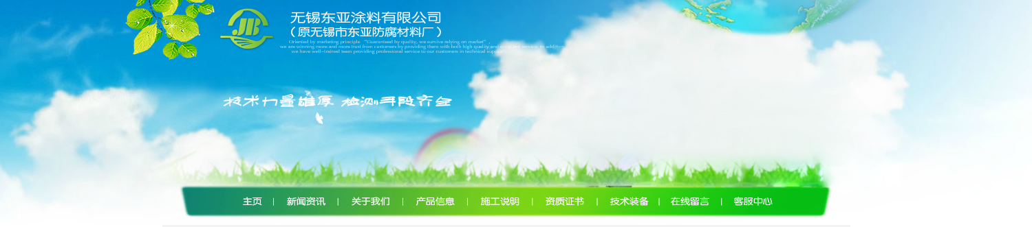 | | Welcome to Dongya Website! / 關(guān)于我們 |  | 無錫東亞涂料有限公司(原無錫市東亞防腐材料廠),自一九八三年開始從事防腐涂料的研制和生產(chǎn),至今已有二十八年的歷史。工廠已具備年產(chǎn)一萬噸各類涂料的生產(chǎn)能力,共生產(chǎn)十八大類,計(jì)二百... | | Product Directory / 產(chǎn)品目錄 | |